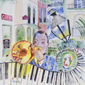 I sketched the bass player on Jackson Square and he inspired the whole painting.