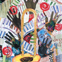 The negative space of the tree and its roots depict the birth of jazz with Jackson Square in the background. By using collage, it looks like I did some quilting on this one.