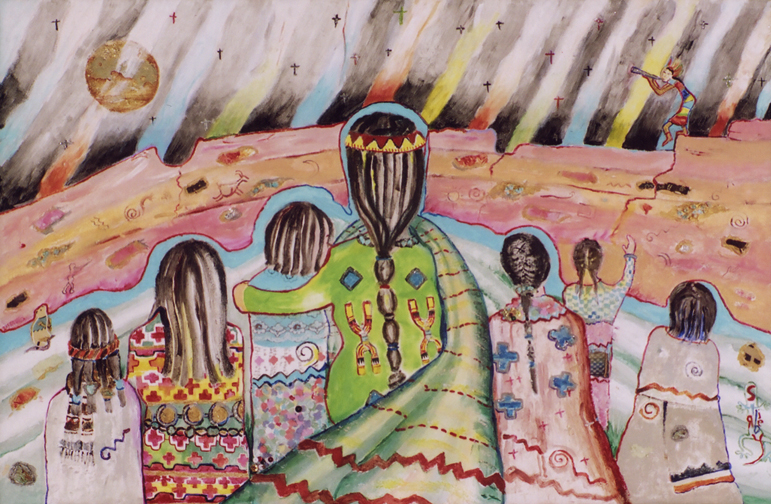The Hopi legend of Kokopelli spreading his happiness and joy inspired this painting.